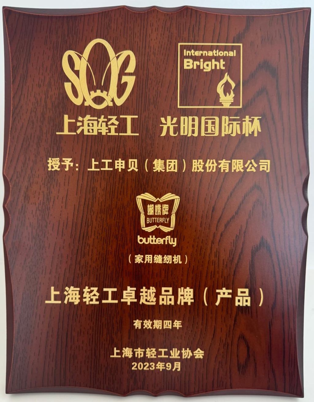 蝴蝶牌荣获上海轻工卓越品牌(产品)