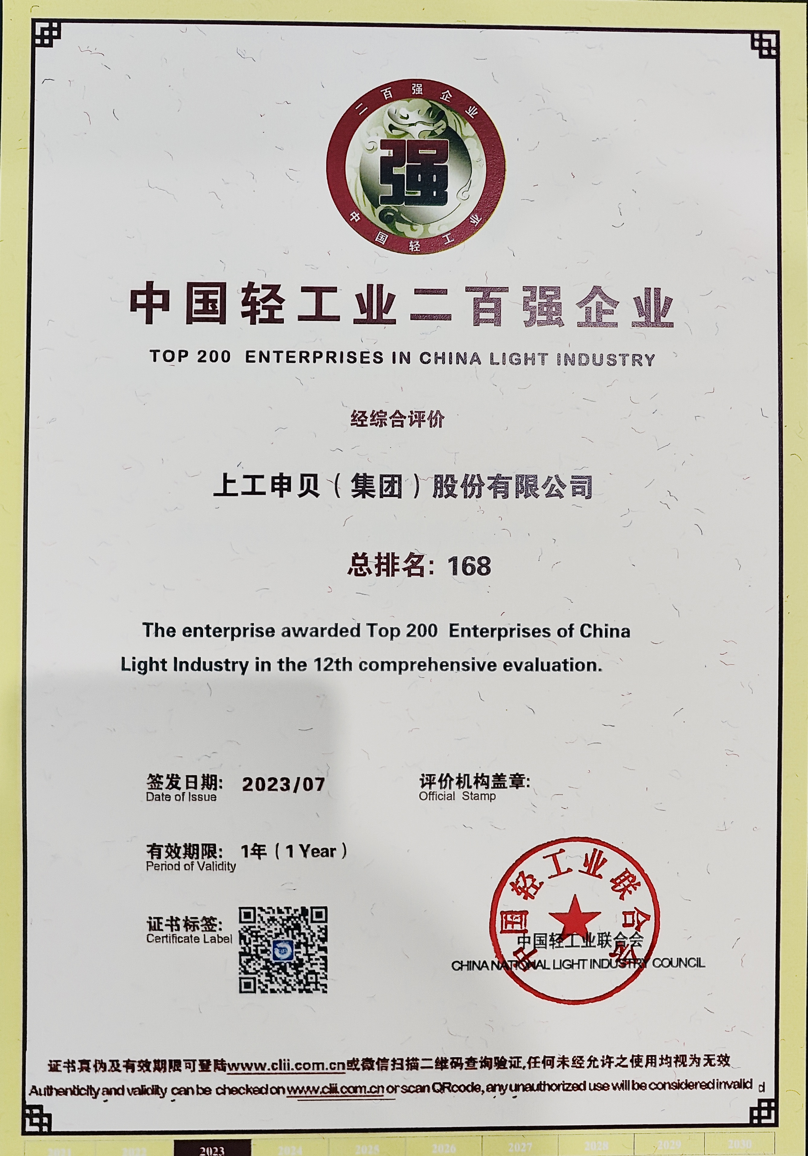 公海彩船6600集团入选中国轻工业二百强
